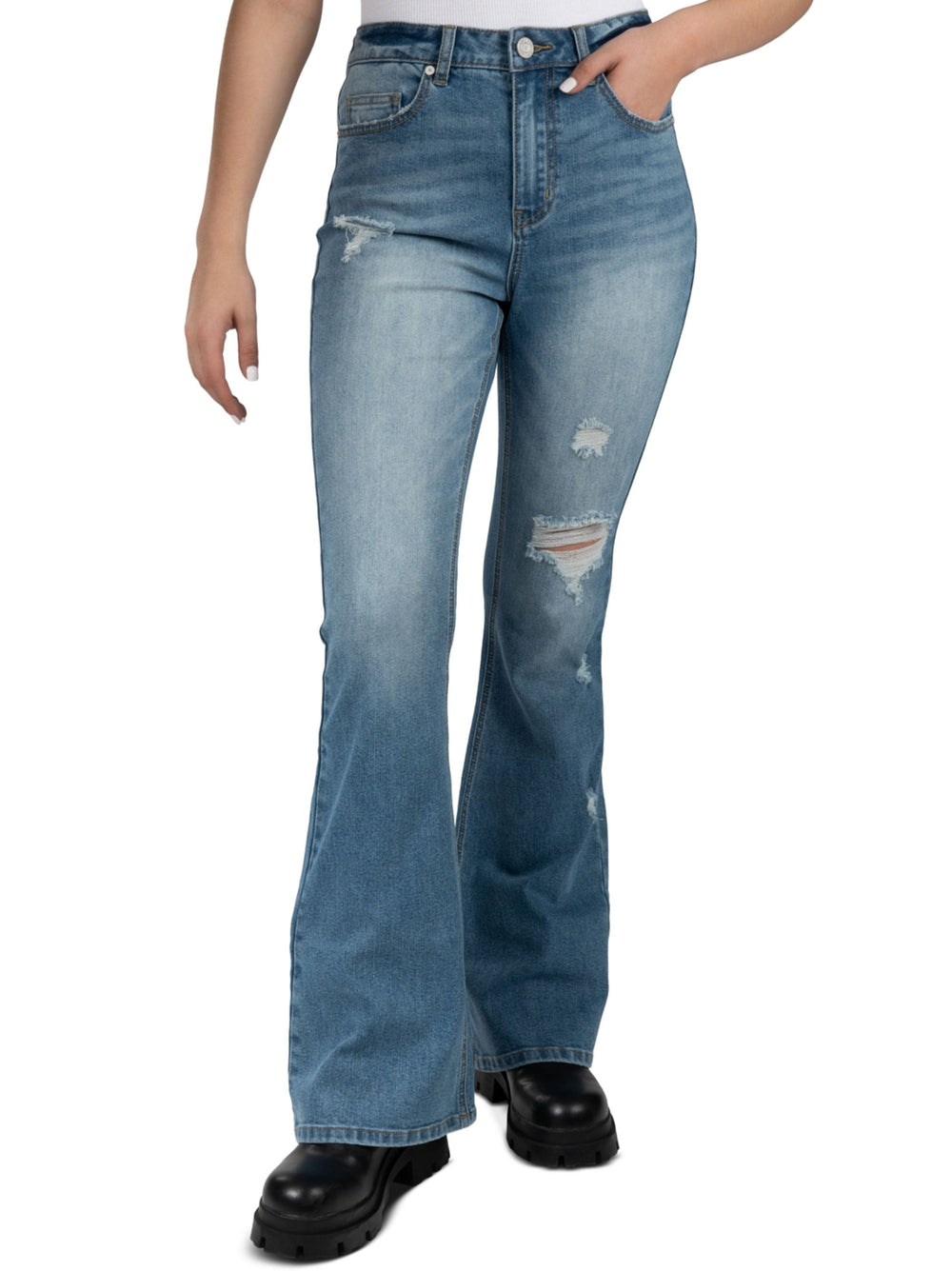 Women's Ripped Washed Flare Jeans,Blue - 1 / Blue is backordered and will ship as soon as it is back in stock.