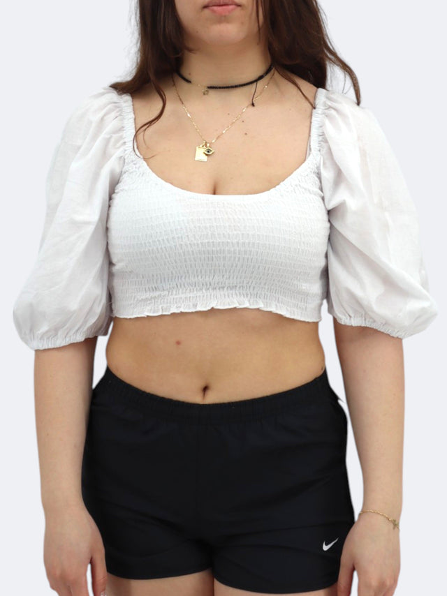 Women's Smocked Cropped Top,White - S / White is backordered and will ship as soon as it is back in stock.