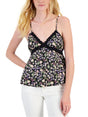 Women's Floral Printed Lace Trim Camisole,Black