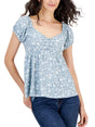 Women's Puff Sleeve Printed Top,Light Blue
