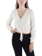 Women's Lace Trim Tie Front Top,Cream - M / Cream is backordered and will ship as soon as it is back in stock.