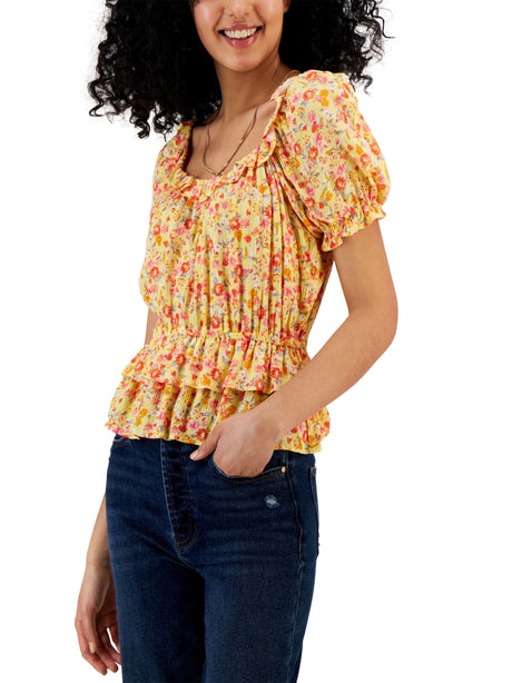 Women's Floral Printed Ruffled Top,Multi