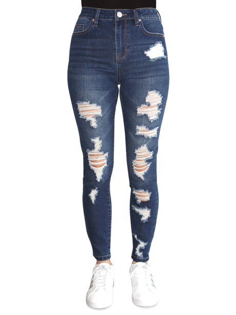 Women's Ripped Washed Jeans,Blue