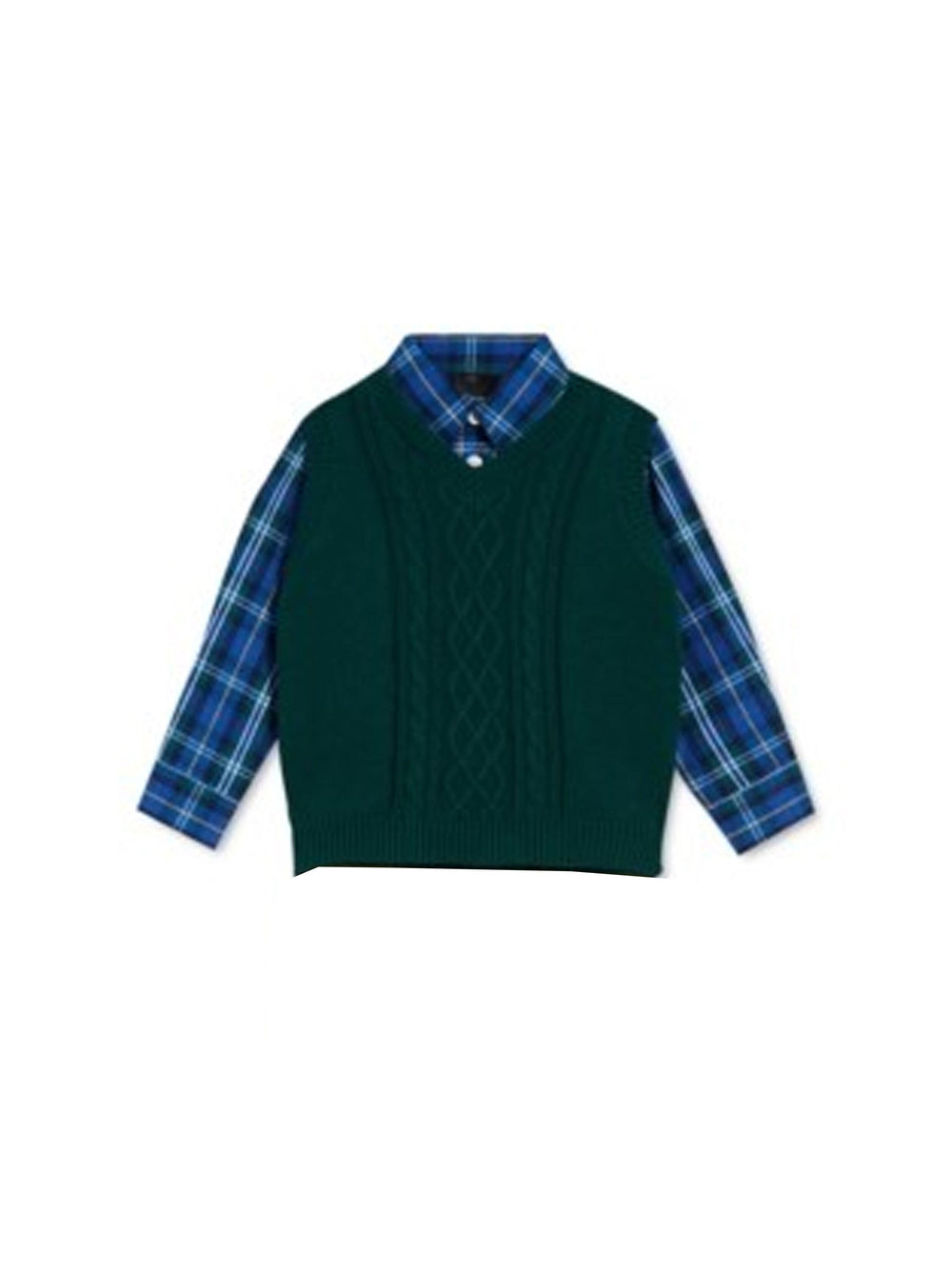 Kids Boy's 2 Pcs Textured Sweater & Plaid Shirt Set,Green/Blue - 18 M / Green/Blue is backordered and will ship as soon as it is back in stock.
