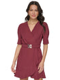 Women's Belted Faux Wrap Dress,Burgundy - XS / Burgundy is backordered and will ship as soon as it is back in stock.