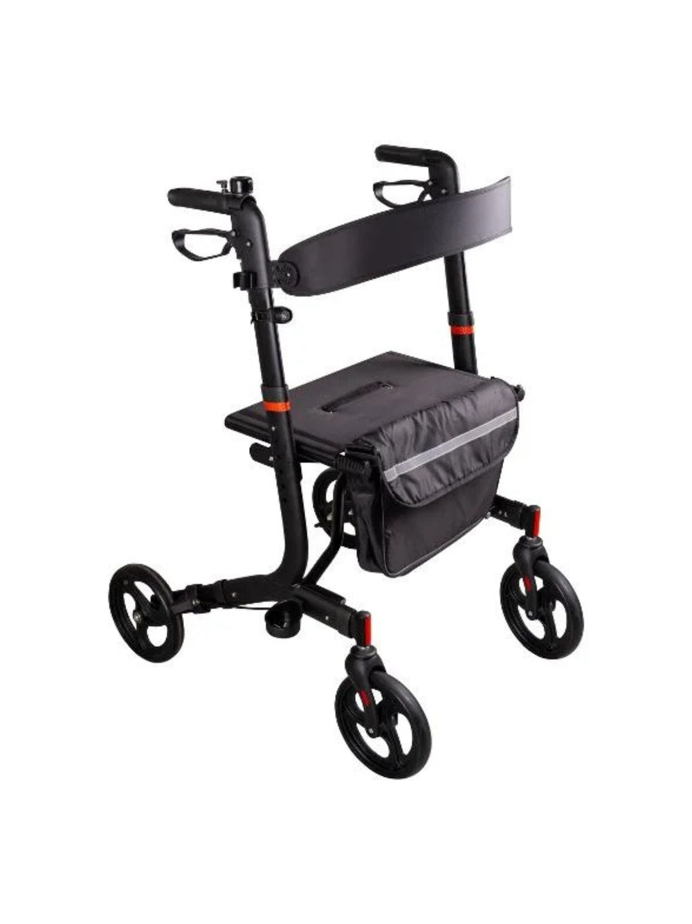 Includes accessories: Removable fabric bag with shoulder strap, walking stick holder, cup holder, LED light, and bell