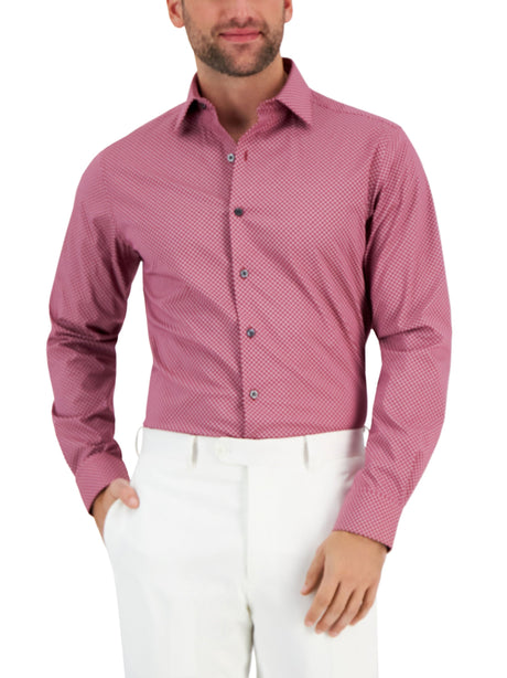 Men's Puzzle Printed Buttons Down Shirt,Dark Rose