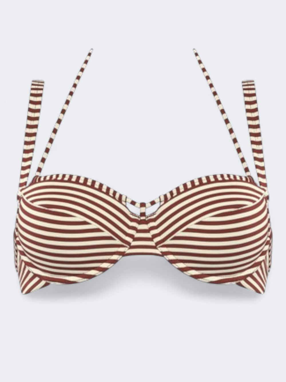 Women's Striped Bikini Top,Burgundy/Beige - 70C / Burgundy/Beige is backordered and will ship as soon as it is back in stock.