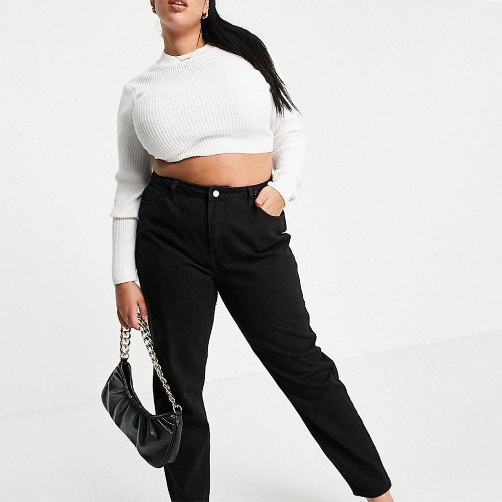 Women's High Rise Mom Fit Solid Jeans,Black - 14 / Black is backordered and will ship as soon as it is back in stock.