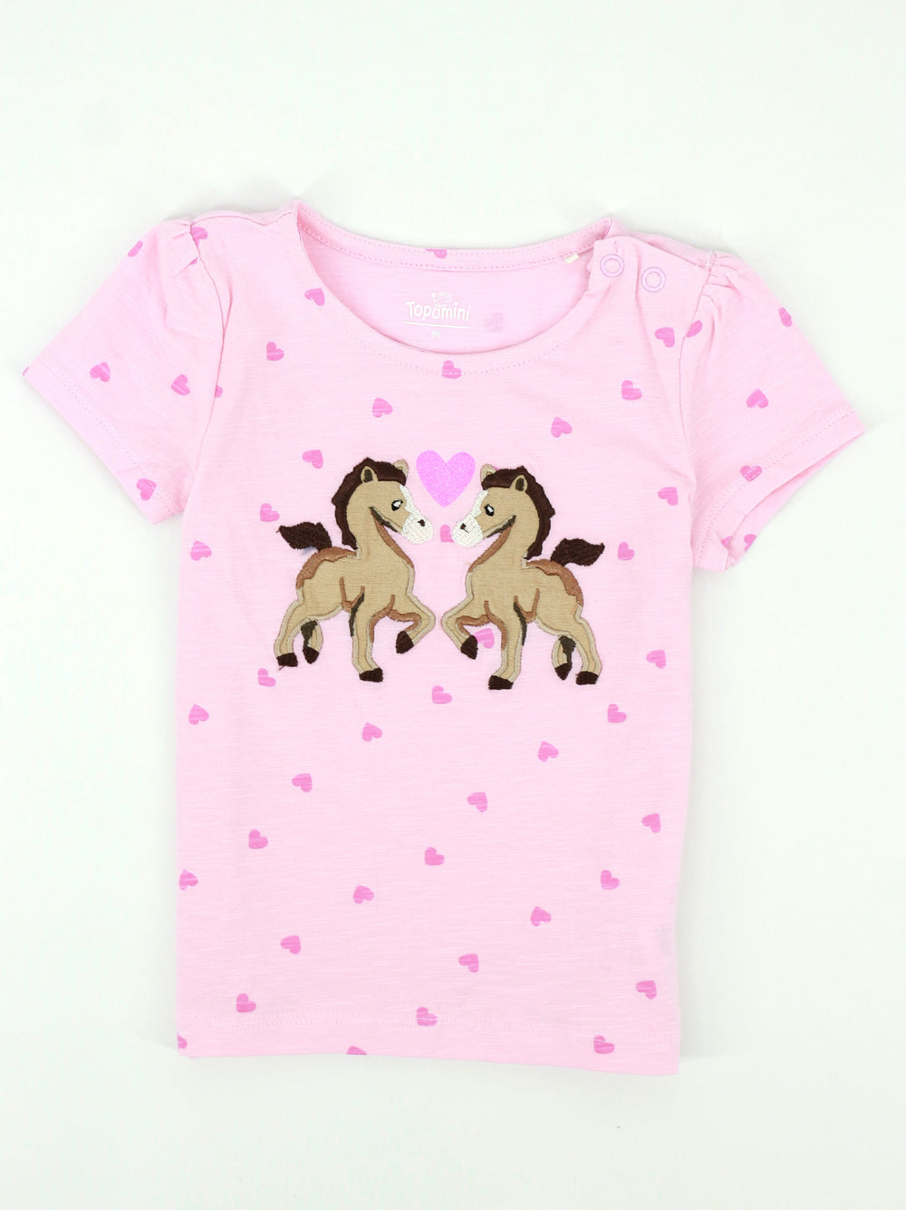 Kids Girl Heart-Printed/Embroidered Top,Pink - 18-24 M / Pink is backordered and will ship as soon as it is back in stock.