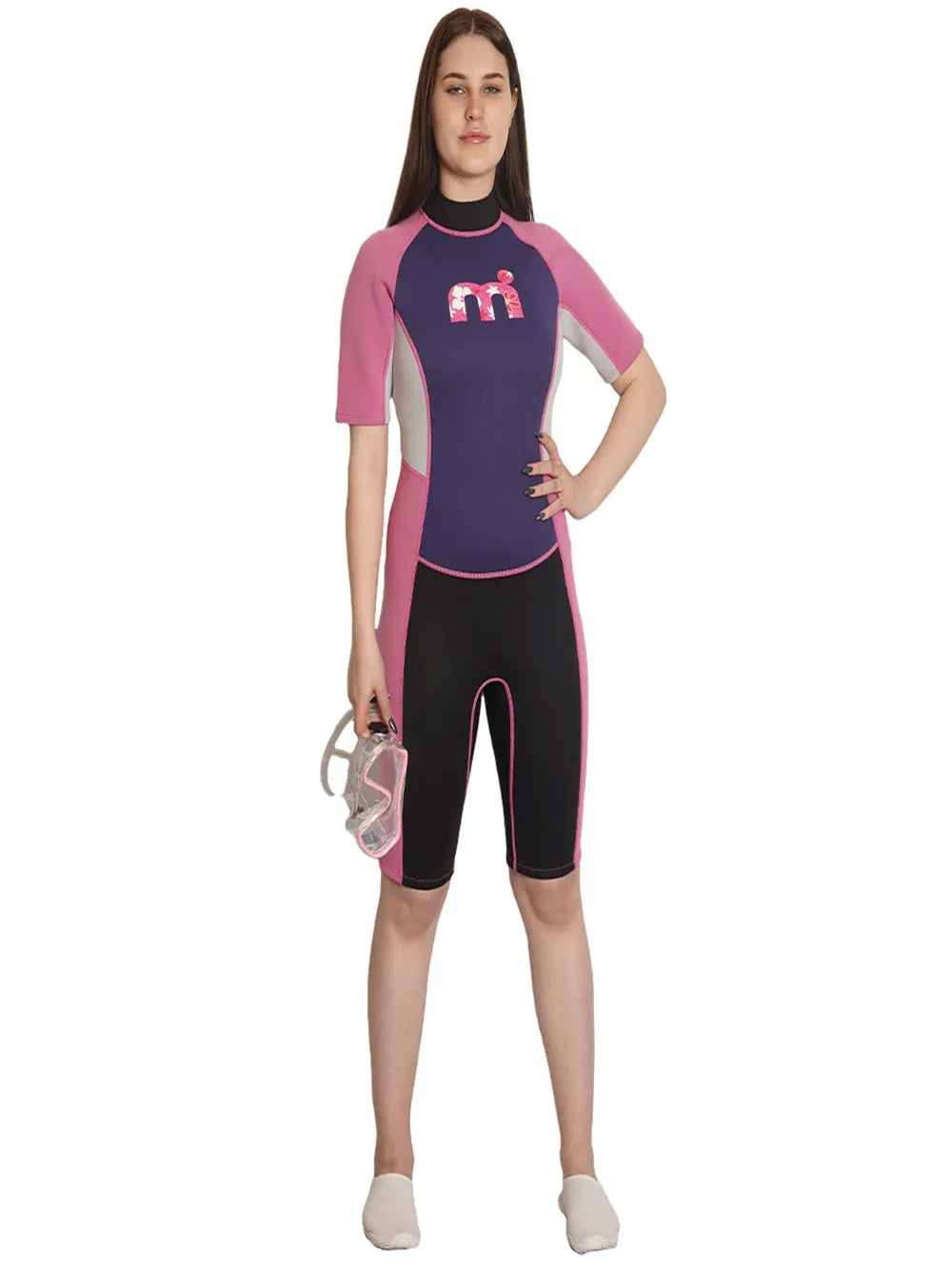 IDEAL FOR : Women:OCCASION : Casual:COLOR : Pink/Black:Bottom Style : No Pockets:TYPE OF CLOSURE : Zipper Fly/Hook And Loop:types of neckline &collar : High Neckline:Pattern&Print : Color Blocked:TYPE OF SLEEVE Short Sleeve:Item Style Wetsuits:Fabrics : 100% POLYAMIDE:CARE : Machine Washable:Disclaimer : Product color may slightly vary due to photographic lighting sources