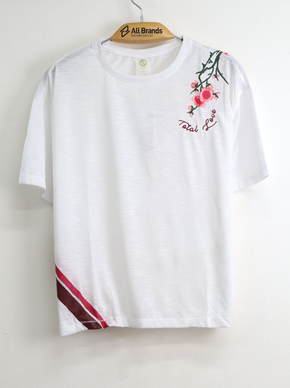 Women's Floral Embroidered T-Shirt,White - S / White is backordered and will ship as soon as it is back in stock.