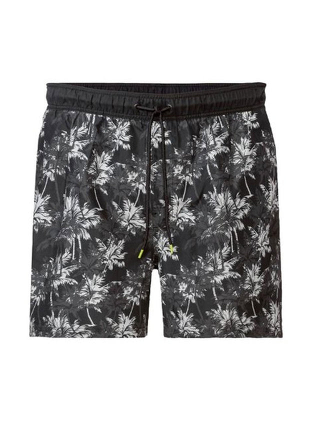 Men's Palm Printed Swim Trunks,Black - S / Black is backordered and will ship as soon as it is back in stock.
