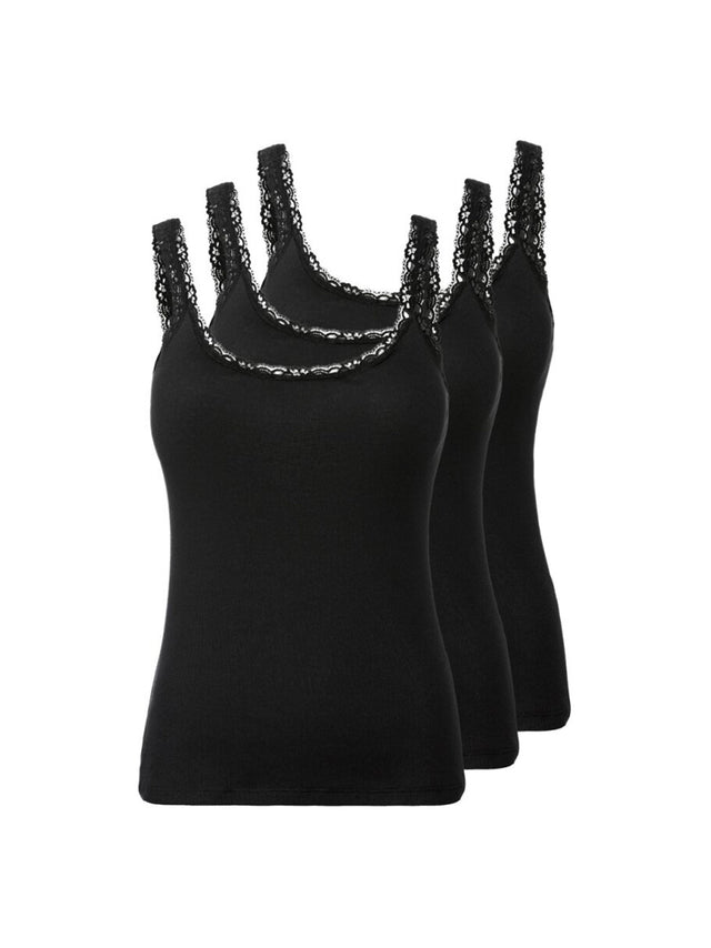 Women's 3 Pcs Lace Trim Top Set,Black - S / Black is backordered and will ship as soon as it is back in stock.