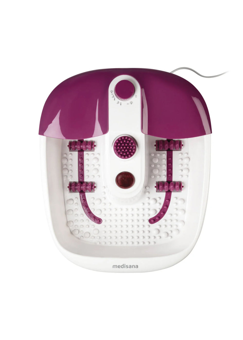 Foot Bath 80W, 34.5 cm x 40.5 cm W x 18.7 cm, Vibration and bubble massage, 4 removable massage rollers, 3 pedicure attachments, non-slip, rubber feet on the bottom and a removable splash guard, hot tub with soothing red light can be filled with both cold and hot water, but can also be used without water