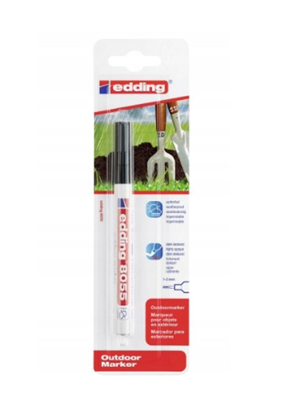 Outdoor marker for permanent writing on almost all outdoor surfaces, such as waste bins or children's toys or garden tools