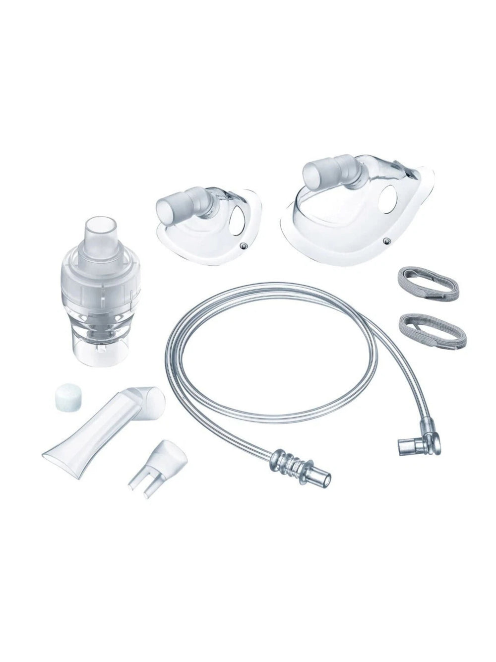 Contents of the delivery: 1 inhaler, nebulizer, compressed air tubing, mouthpiece, adult mask, child mask, 5 replacement filters, instruction manual