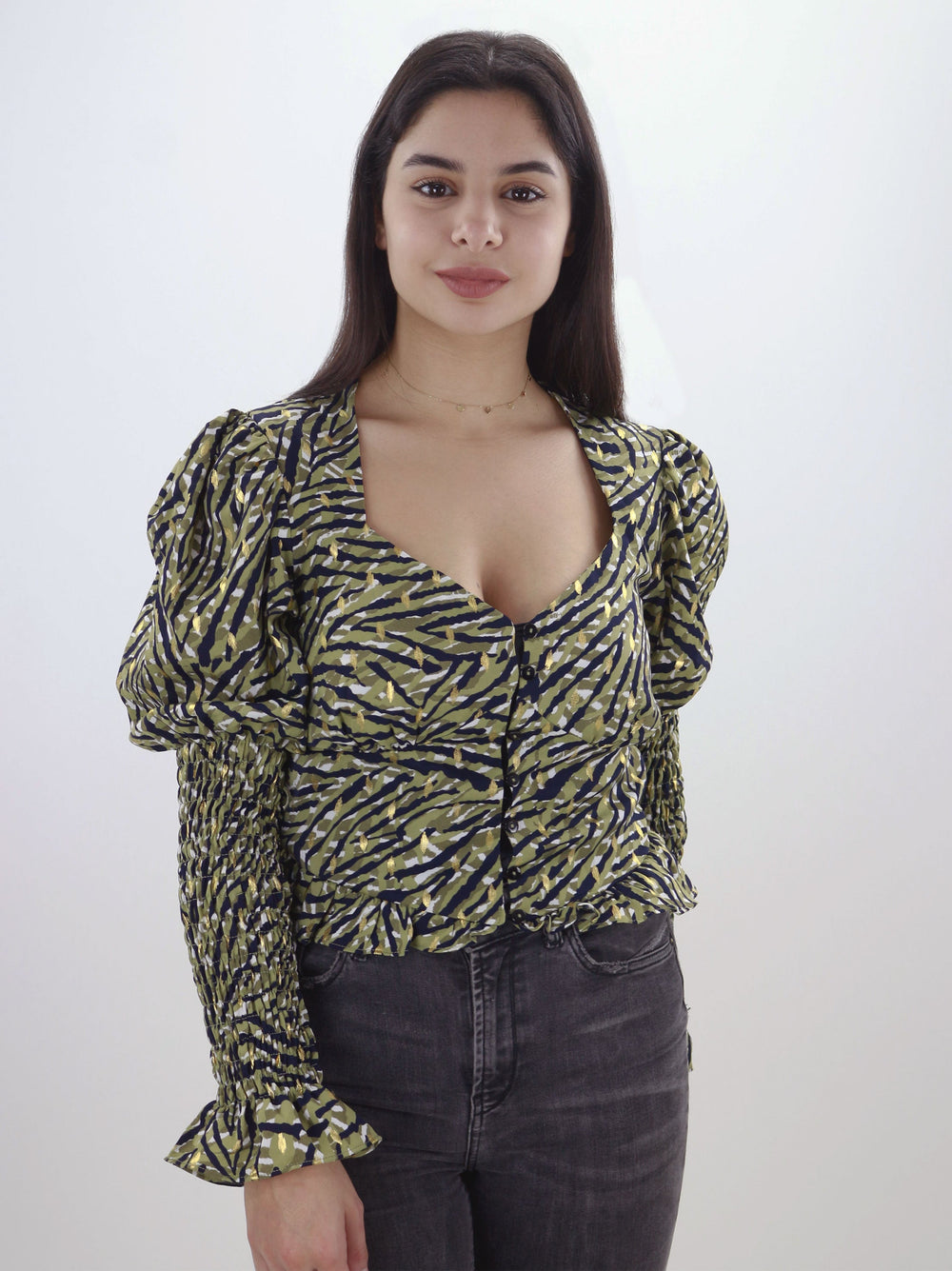 Women's Printed V-Neck Buttons Top,Multi - S / Multi is backordered and will ship as soon as it is back in stock.