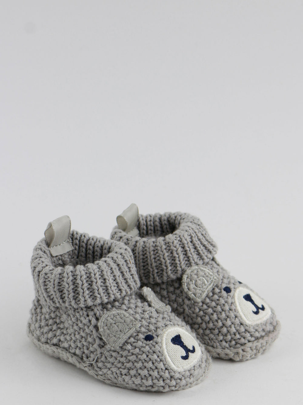 Kids Boy Knitted Bear Slippers,Grey - NEW BORN / Grey is backordered and will ship as soon as it is back in stock.