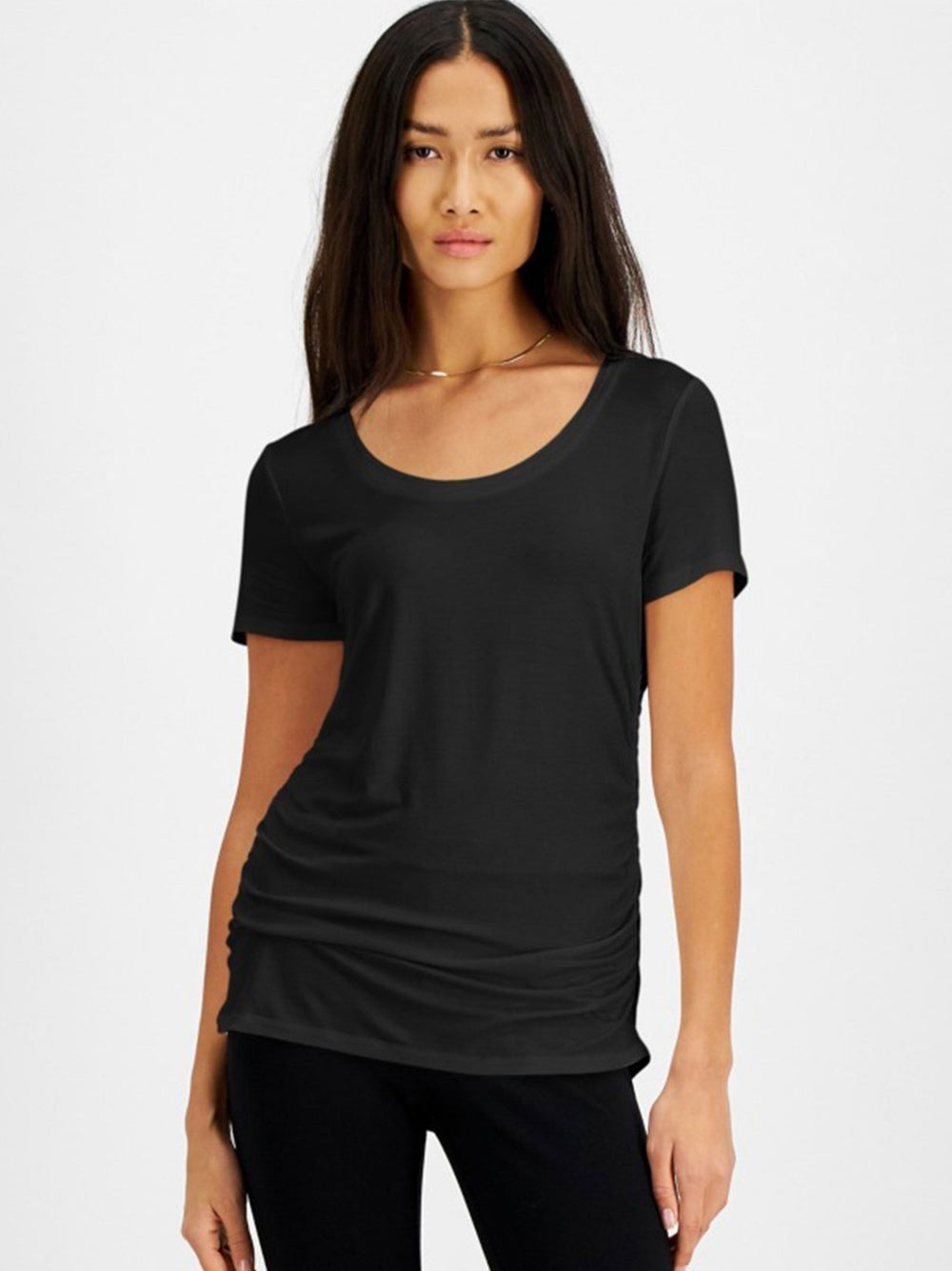 Women's Plain Solid Short Sleeve Top,Black
