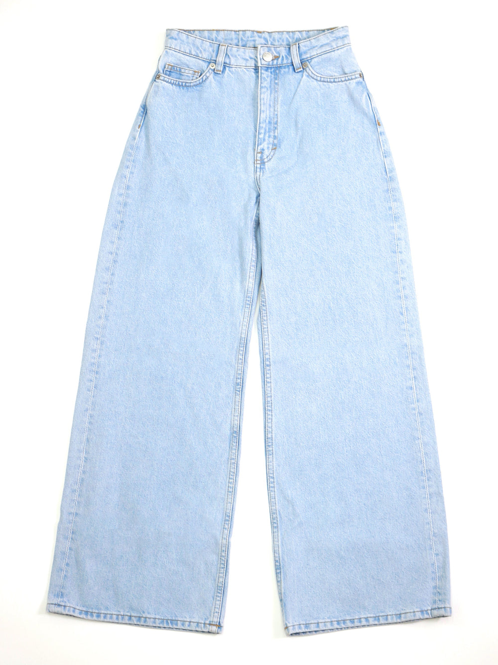 Women's Plain Solid Wide Legs Jeans,Light Blue