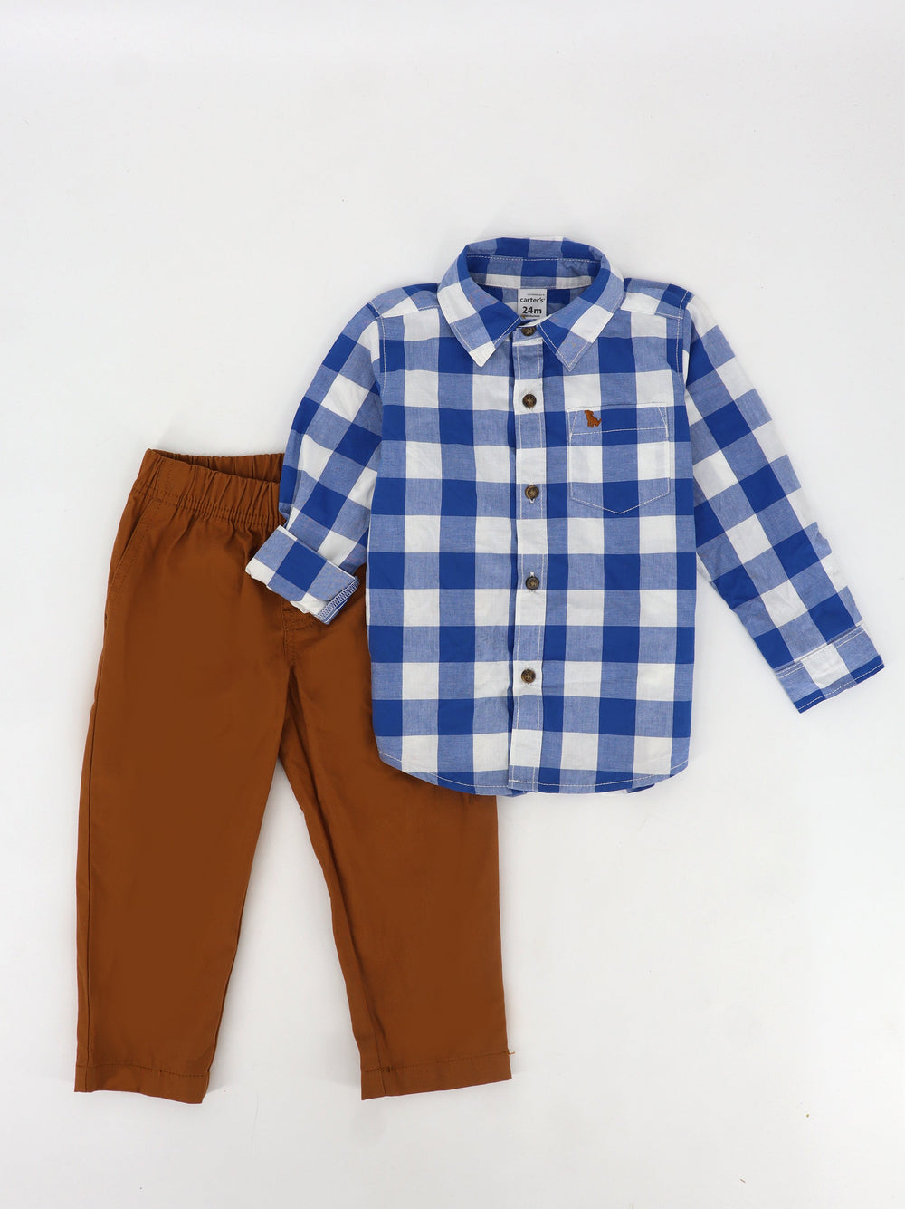 Kids Boy's 2 Pcs Plaid Top & Bottom Set,Blue/Brown - 2 Y / Blue/Brown is backordered and will ship as soon as it is back in stock.
