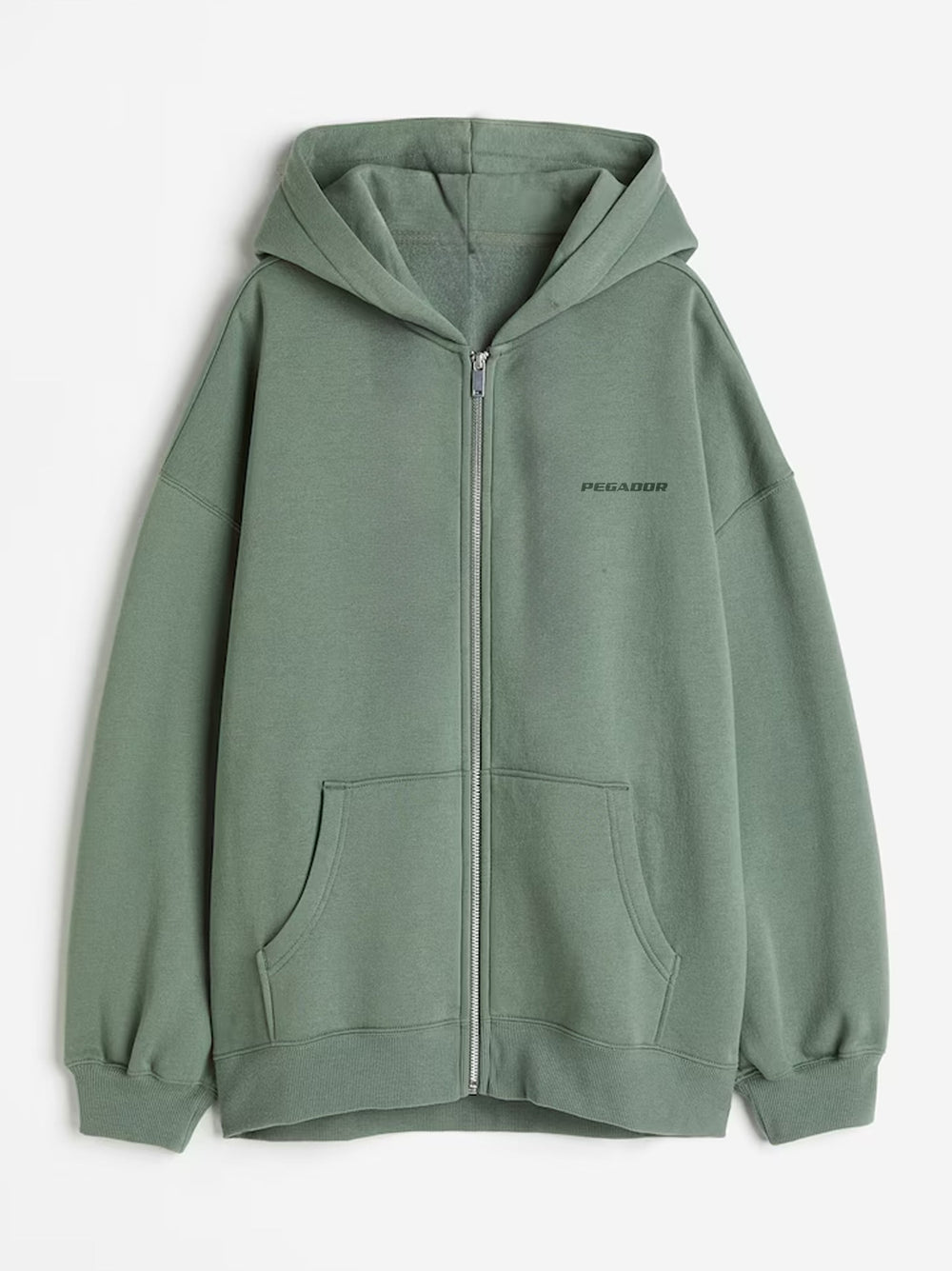 Men's Brand Logo Printed Zipped Up Hoodie,Green
