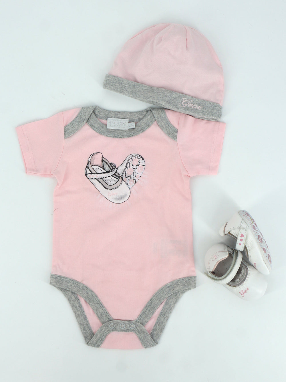 Kids Girl's 3 Pcs Graphic Printed Shoes Hat & Bodysuit Set,White/Pink