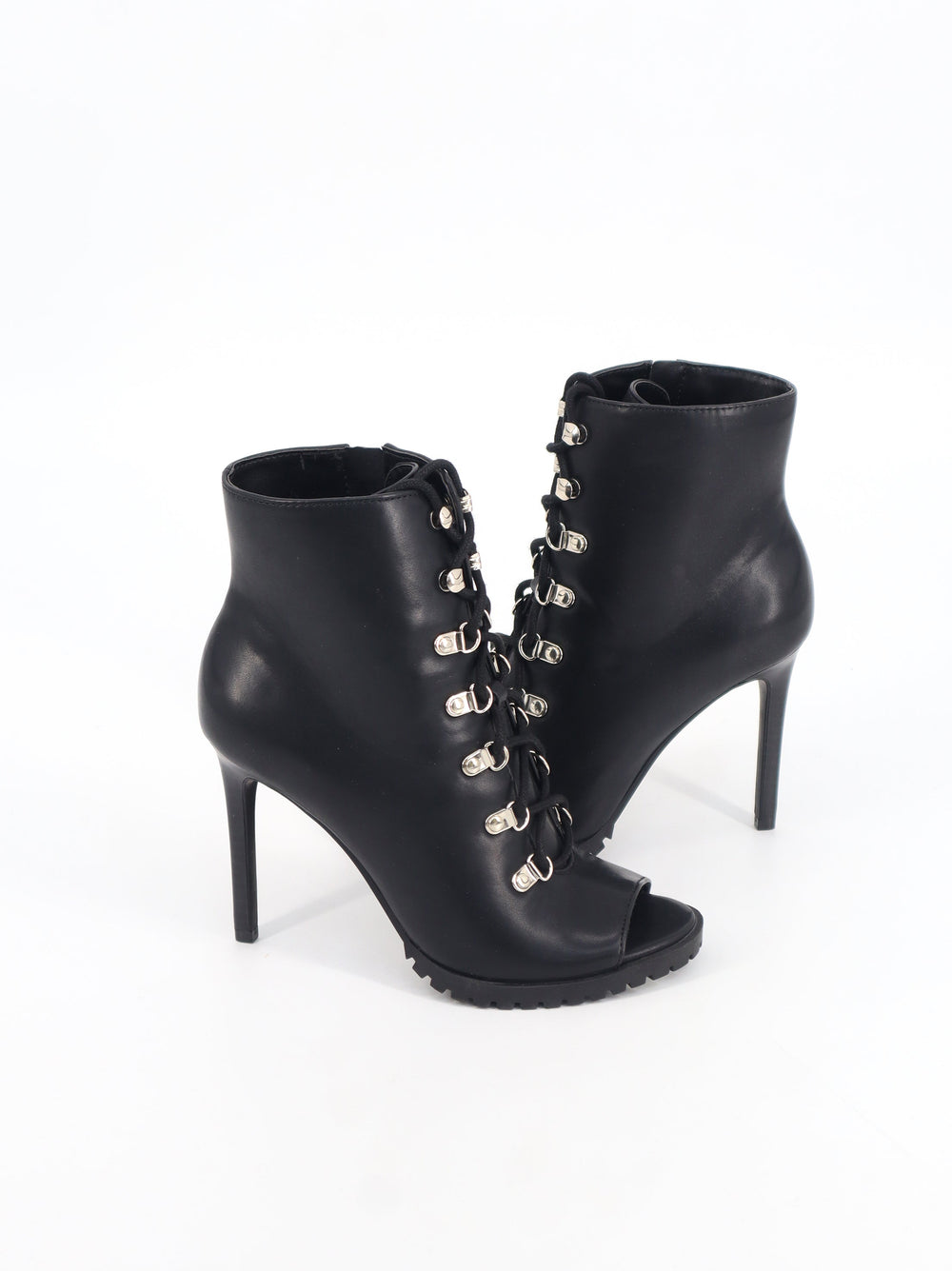 Women's Leather High Heels Ankle Boots,Black