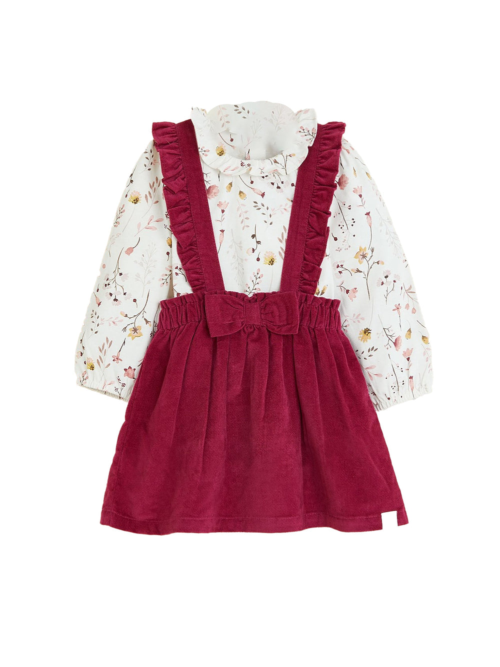 Kids Girl's 3 Pcs Top & Bottom & Tights Set,Off White/Burgundy