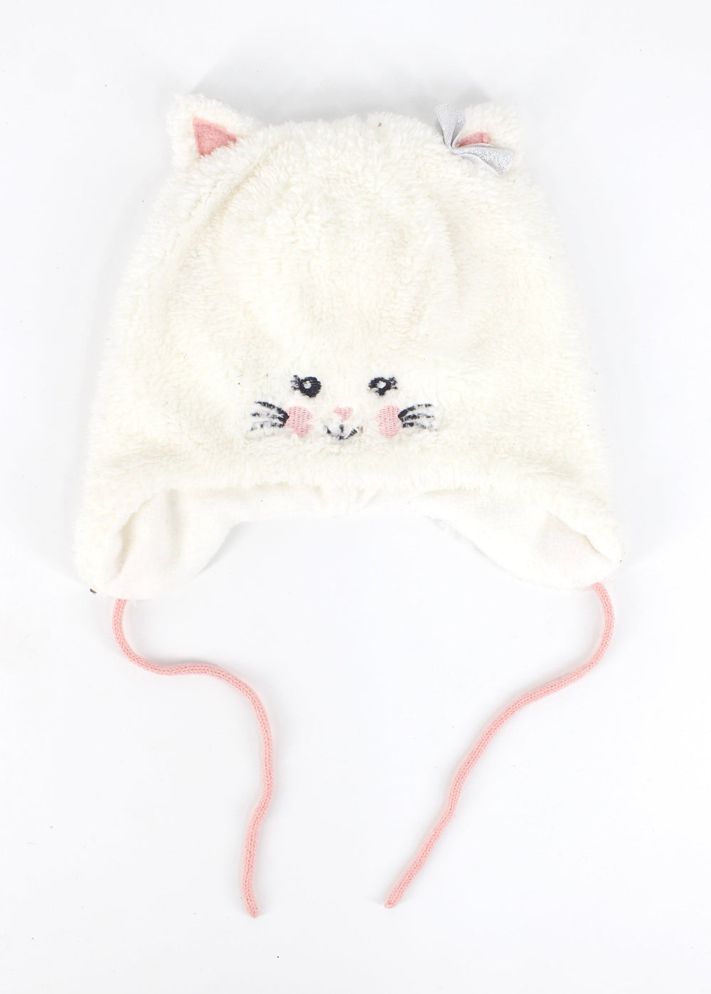 Kids Girl's Graphic Embroidered Beanie,Size: 0-12 Months,Off White,Made of 100%Polyester