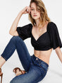 Women's Plain Cropped Blouse,Black
