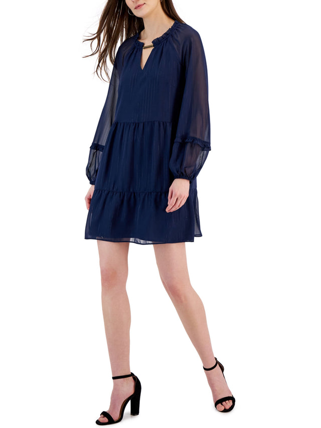 Women's Metallic Stripe Fit & Flare Dress,Navy