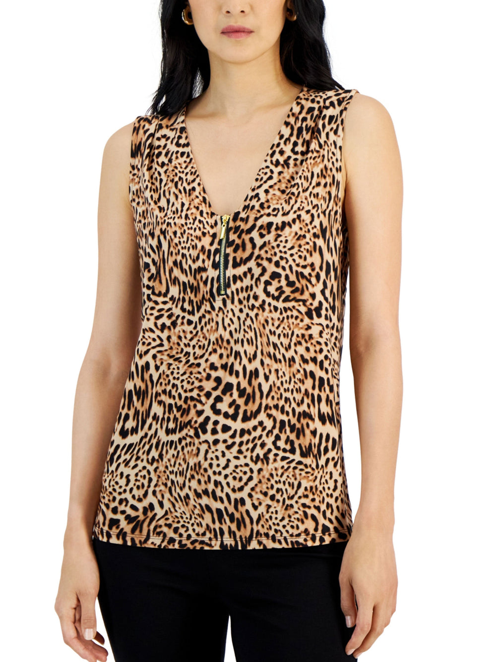 Women's Zip Front Animal Printed Top,Beige