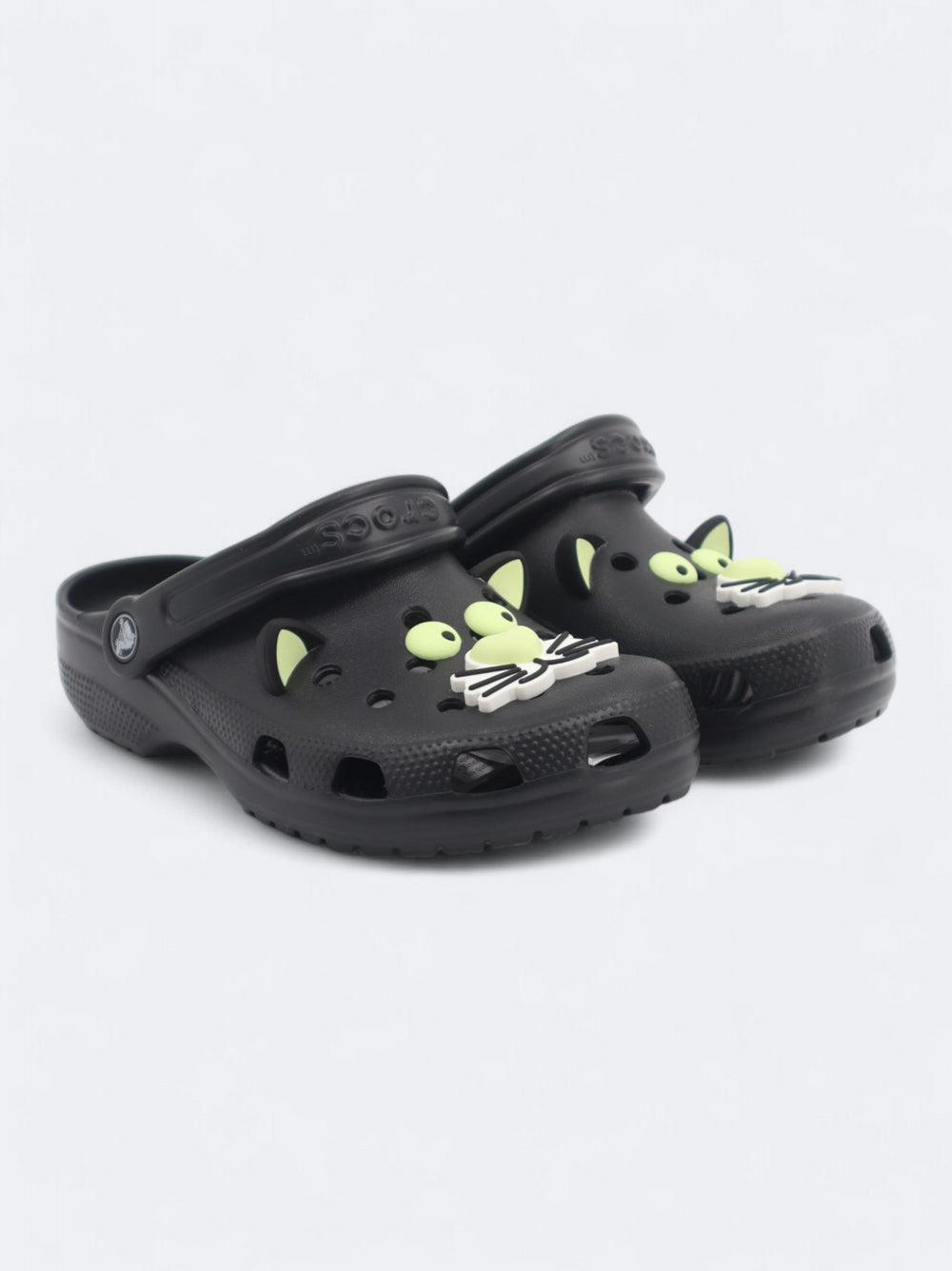 Kid's Girl's Patched Classic Glow Black Cat Clogs Slippers,Black